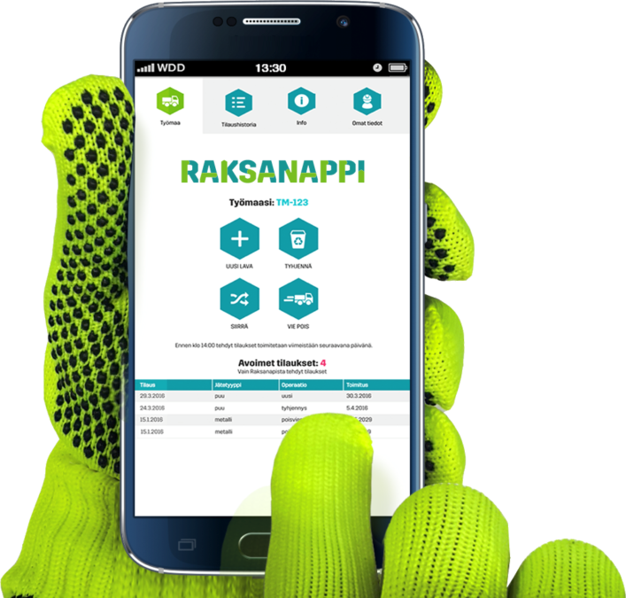 Rakennusmestarit tilasivat ennen palveluja soittamalla, nyt sähköisen raksanappi-palvelun kautta. Kun he tekevät verkkotilauksen klo 14:ään mennessä, tilaus toimitetaan heille seuraavan päivän aikana.