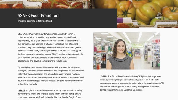 Food Fraud Vulnerability Assesment -työkalu on saatavissa käyttöön maksutta rekisteröintiä vastaan osoitteesta https://www.pwc.nl/en/industries/agrifood/ssafe-food-fraud-tool.html.