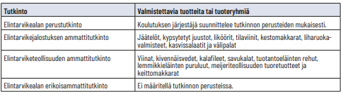Elintarvikealan ammatilliset tutkinnot ovat muuttuneet