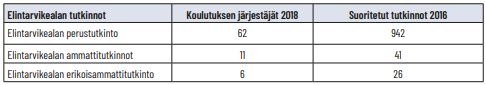 Elintarvikealan ammatilliset tutkinnot ovat uudistuneet 1.8.2018 alkaen. Elintarvikejalostajan, lihanjalostajan, maidonjalostajan ja viinituotannon ammattitutkinnot ovat yhdistyneet uudeksi elintarvikejalostuksen ammattitutkinnoksi ja lihantarkastuksen, lihateollisuuden ja meijeriteollisuuden ammattitutkinnot elintarviketeollisuuden ammattitutkintoon. Elintarviketekniikan erikoisammattitutkinto on nyt elintarvikealan erikoisammattitutkinto.