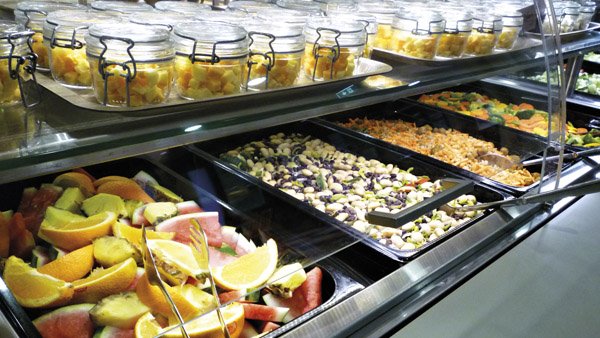 Lounasvaihtoehtoja ja -salaatteja on tarjolla monipuolisesti kohtuulliseen opiskelijahintaan.