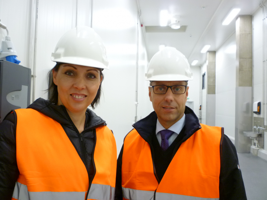 Kehitysjohtaja Kaisa Penttilä ja toimitusjohtaja Karri Kunnas ovat innossaan uuden tehtaan tarjoamista mahdollisuuksista.