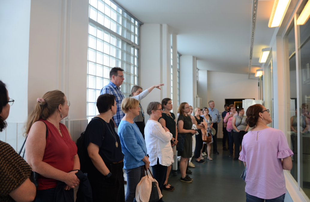 Miniseminaarin jälkeen tutustuttiin Luken tiloihin Vasaran ja erikoistutkija Eila Järvenpään opastuksella. Vierailijat pääsivät tutustumaan lähemmin ekstruusiolaitteisiin, joista seminaarissa oli kuultu.