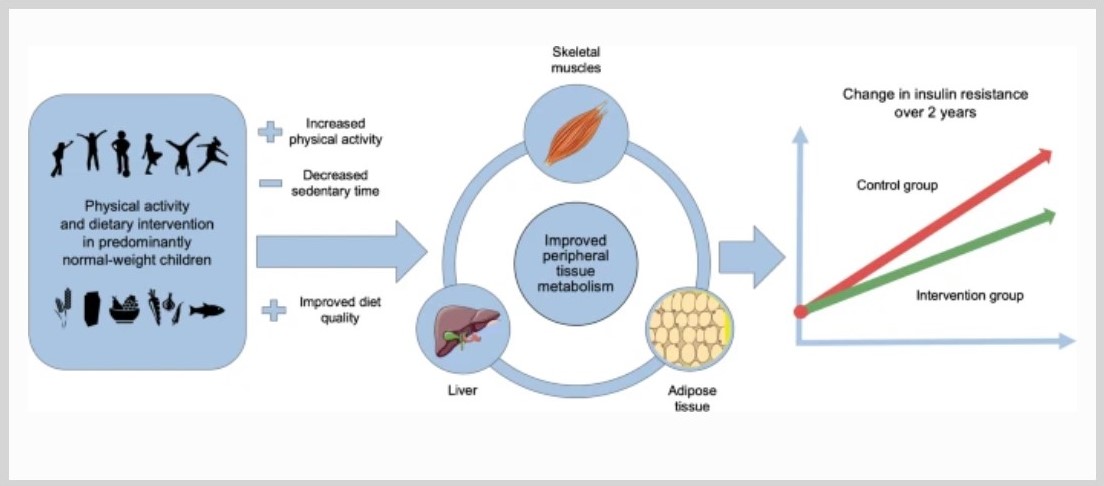 Insuliiniresistenssillä tarkoitetaan insuliinin vaikutuksen heikkenemistä sen kohdekudoksissa eli luustolihaksissa, rasvakudoksessa ja maksassa. Insuliiniresistenssi on yleensä ensimmäinen merkki sokeriaineenvaihdunnan häiriöstä ja kehittyy paljon ennen haiman insuliinierityksen häiriötä, kohonnutta verensokeripitoisuutta ja lopullista tyypin 2 diabetesta. Aiemmat tutkimukset ovat osoittaneet liikunta- ja ravitsemusohjauksen vähentävän insuliiniresistenssiä ylipainoisilla ja lihavilla lapsilla. Nyt julkaistu kuopiolainen tutkimus on tieteellisesti, kansanterveydellisesti ja jopa käytännön lääketieteellisesti tärkeä, koska se osoittaa ensimmäistä kertaa, että yhdistetyllä liikunta- ja ravitsemusohjauksella voidaan pitkäaikaisesti hidastaa insuliiniresistenssin eli tyypin 2 diabeteksen esiasteen kehittymistä lapsilla, joista valtaosa oli normaalipainoisia tutkimuksen alkaessa.
