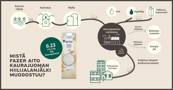 Fazer tutki Fazer Aito Kaurajuoman hiilijalanjäljen yhdessä ulkopuolisen asiantuntijan kanssa osana yhtiön kunnianhimoista ilmastotyötä. Hiilijalanjälki 0,23 kg CO2-ekv/kg on elintarviketuotteeksi pieni. Yhtiön tavoitteena on vähentää päästöjä 50 % vuoteen 2030 mennessä.